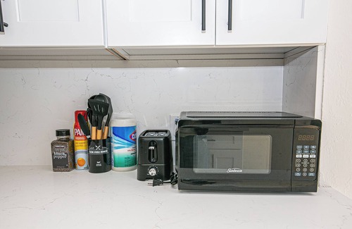 Coffee maker, toaster, utensils, and cookware