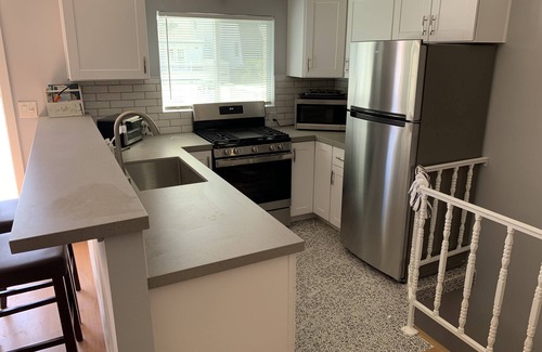 The upper floor boasts a fully equipped newly remodeled kitchen (3/22)with everything you will need to prepare any meal or a microwave to warm up a quick snack. The dining area seats 5 plus you can also eat at the kitchen counter, as well as this two-story house has a huge sunny deck with a gas barbecue grill and outdoor furniture. So you will feel right at home, the family room has a Tv/dvd player and all rooms are set up for internet connections.