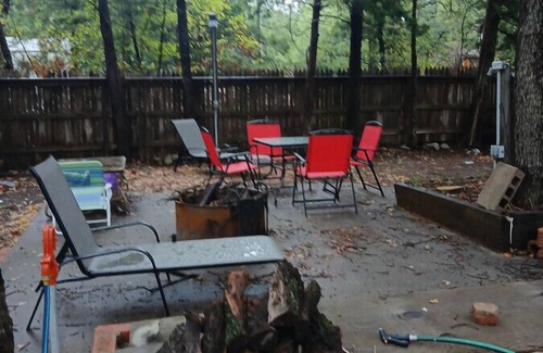 Welcome to our cozy cabin in the woods by Canton Lake! We are a half mile from Sandy Cove where you can swim and fish. There is a small bar and restaurant within walking distance. We have ample parking with enough room for your boat or jet skis. This is a quaint home with a large outdoor area for playing and visiting. Brand new mini-splits allow you to set different rooms at different temperatures. We have a large fire pit with weather resistant chairs for adults and children. Pets are allowed, but there is a $25 fee. Challenge the family to a game of horseshoes while you enjoy the secluded and shaded yard. You can use our new propane grill to cook dinner or roast it over the fire (no wood provided). There is an indoor game room with a pool table, dart board and a small cornhole set that can be played indoors or out. Sit at the bistro table or pull out the card table and chairs for a competitive board game or quiet puzzle. In the main living area, there is a smart TV where you can log on to your own streaming account and relax watching your favorite show. The kitchen is stocked with all the essentials to prepare a delicious meal. We have a Keurig coffee station for hot or cold drip or pod coffee. You can dine outside on the patio table or inside at a fold-out table that will seat four. There is enough room for 7-8 people to sleep comfortably. The one bedroom has a queen bed and in the living room there is a small futon that would sleep two children or one adult. Upstairs in the sleeping loft, there are 3 twin XL beds and one queen futon and another TV. Our cabin can be like camping indoors as there is not much privacy and the bathroom is small. The sleeping loft is accessed through the bedroom up a very steep and narrow staircase, so not for everyone. In the petite bathroom, there is a shower with plenty of towels. We have our own water well with softened water. Our lake cabin is very versatile and can accommodate a family or group for vacation or a fishing/hunting expedition. Please contact us with questions or concerns. We look forward to hosting you soon!