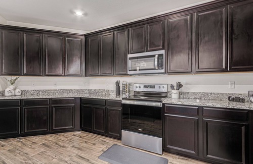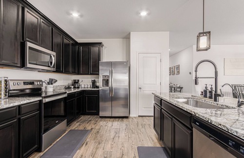 Retreat to the master bedroom featuring a king bed, walk-in closet, and spacious bathroom with a separate shower and tub. The second bedroom also has a king bed, while the third offers a queen bed. The fourth bedroom is perfect for kids, with a bunk bed that includes a twin on top, a full on the bottom, and a pull-out trundle bed.