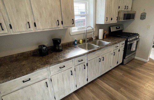Off street parking, Private backyard. Arcade game with 300 built in games for unlimited fun. Central air conditioning. Full kitchen, separate dining area. First floor bedroom has a queen size bed. 2 upstairs bedrooms has 1 queen and 1 full beds in each bedroom. Washer and dryer that guests can use laundry detergent is provided. Main living area includes smart tv and wifi.