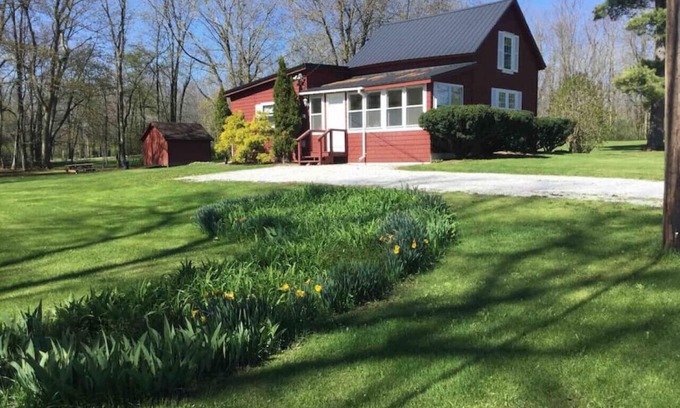 The Funhouse is tucked away on the secluded North Hero Island. This snug home is perfect for a small family vacation, and while the house itself is not on directly on the lake, the private family owned beach is just 400 feet away, so going for a swim is a breeze. Relax in the screened-in porch with a good book, or hang out inside on cool days using TV and WiFi, and when you get hungry, the kitchen is equipped with cookware and basic appliances to make cooking a cinch. Mini split ac and heat brand new!