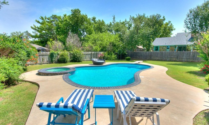Guests have full use of the private home, yard, and pool. The owner has a few personal items stored in the garage. I or my assistant will greet you at the home upon arrival to orientate you to the home. This is a NON-SMOKING home. Located in a family-friendly, quiet community. You will see people on the sidewalks walking their dogs. The home is located at the end of a cul-de-sac which minimizes traffic. I-35 is very close, allowing quick access to Oklahoma City, 15-20 minutes, depending upon traffic and specific location. There are several popular restaurants nearby for a relaxing evening or weekend outing.