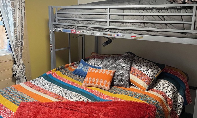 The cabin is a 2 room cabin with a full size bunk bed set that is a full over full (450 lb limit per a bed). No running water, Water source is 1.5 miles away. Outhouse and Sauna behind the cabin. 5 gallon jugs provided for you to haul water. Cabin is 12x22 feet.
