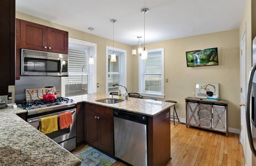 A hidden gem in downtown Trenton, NJ. A stunning newly renovated 3 BDR triplex. Minutes away from Sports & Entertainment Arena and Trenton Social. 15 minutes from Sesame Place and 30n minutes from Six Flags Great Adventure. Electric Fireplace is 80" built-in Smart TV and surround sound, game room, Jacuzzi tub in the master bathroom, Stainless steel appliances, hardwood floors throughout, flat-screen TVs in each bedroom. Come and experience an amazing home away from home!