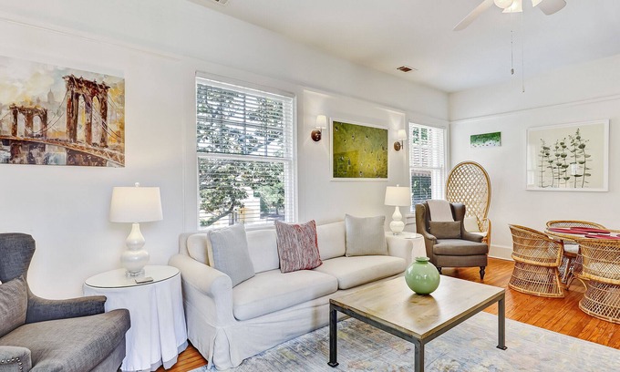 Drayton Place 3 is a premier property for anyone searching for Savannah vacation rental getaway for four guests. This two-bedroom, one-bathroom charmer dazzles with a fully updated interior, quaint outdoor courtyard, and entertainment features. The home's enviable location in Savannah's famed Thomas Square neighborhood places guests next door the vibrant Starland District. A top attraction in Savannah, Starland offers a beautiful walkable neighborhood with trendy local boutiques, coffee shops, galleries, restaurants, bars, and music venues. Drayton Place features a collection of seven apartments with unique and comfortable decor. It is a great property to consider renting for larger groups traveling together.