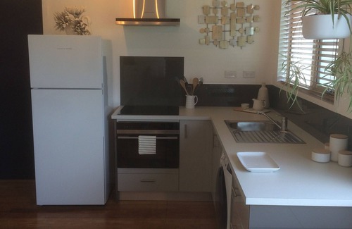 Funky flat with off street under cover parking, wash/dryer combo, free WiFi, TV and heating/air con unit. Situated in the historic village of Franklin on the Huon River with garden, river & village green views. Stunning! Queen bed with fine linen & fluffy towels plus a comfy sofa bed (dble) for extra guests in the open plan dining/lounge & well appointed kitchen. 5-10 Mins stroll to cafes and restaurants.