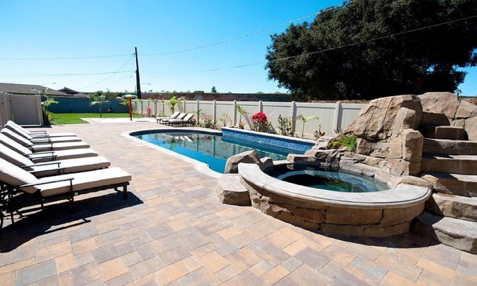 Our home is the dream Disney vacation rental that will stop you in your tracks. Please note, 2 of the 6 bedrooms are located in an upstairs attached apartment that is accessible by a separate entrance. This home has a shared pool with a rockslide baja step and splash pad area! Just off the 5 freeway and central to the best local amenities around, enjoy the benefits of a short 1 mile drive to the Disney Resort. It's right off the freeway for convenience yet tucked away for a great getaway complimented by all the amenities you'd expect from a luxury private home.