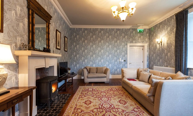 Your stay in the Furlong Suite includes exquisite amenities, including a spacious one-bedroom apartment adorned with an original exposed stone wall feature and a luxurious wet room. This suite is part of a collection of meticulously designed accommodations within the castle, each boasting timeless decor and fully equipped kitchens—ideal for hosting intimate gatherings or pre-wedding celebrations. Enjoy cozy evenings by the working fireplace, and relish in the elegance that surrounds you, creating a serene atmosphere as you prepare for your big day.