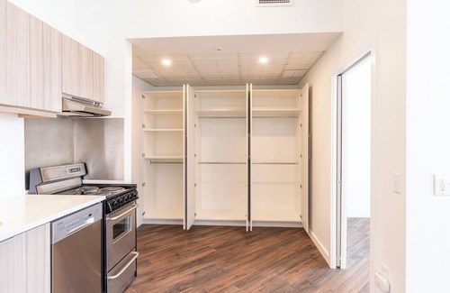 This furnished apt features individually controlled heating/AC, and water heater. Kitchen features quartz countertops, refrigerator, dishwasher, stove, microwave oven, and coffee maker or electric tea kettle; bath includes shower, toilet, and vanity. Living room includes sofa, occasional chair, TV, small dining table and 2 chairs, BR includes a queen size bed. Upscale building with considerate neighbors. Wardrobes include hangers and kitchen includes pots, pans, dishes, glass and silverware, etc.