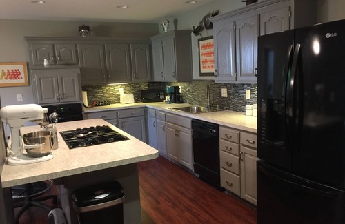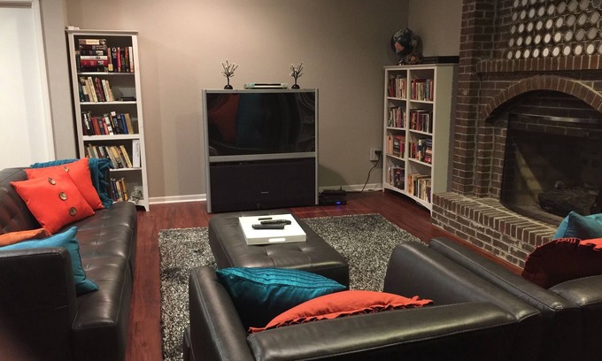 Recently completed lower level apartment in a safe, quiet neighborhood. Light filled with 10-12 ft ceilings and over 1000 sq ft. The décor is contemporary. Bedroom has a queen sized bed and walk in closet. Living room and dining room combination with large screen TV, fireplace with gas logs and a library of reading materials. Full sized dining room table could be expanded if you're having company. Kitchen has cooktop, oven, microwave, dishwasher, full size refrigerator and all the dishes, glasses, utensils, pots, pans that you will need to cook, even your own Kitchenaid mixer. Your can use my washer/dryer with notification. Private entrance via lighted path around the house. Parking in driveway. Free Wi-Fi and wireless printer. Utilities included.