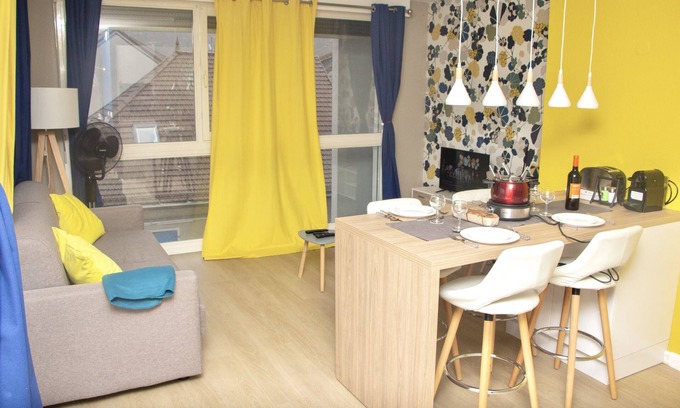 Apartment T2 fully equipped 42m ² located in hyper center of Cluses 5 minutes walk from the Cluses Station and close to all amenities (shops, bakery), and the exit of Cluses-Center of the A40 motorway (40 minutes from Geneva center by highway). ideal for business or tourist trip.