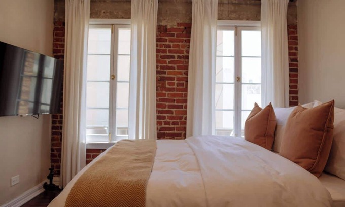 This bachelor unit features a comfortable queen-size bed, ensuring a restful sleep after a day of exploring the city. The kitchenette is equipped with all the basic essentials to prepare light meals or snacks, while ample closet and storage space help keep your belongings organized. Stay entertained with a Roku-equipped 40-inch TV, and enjoy the convenience of 100% cotton linens and towels provided for your stay. In addition, the building offers access to a laundry room for your convenience.