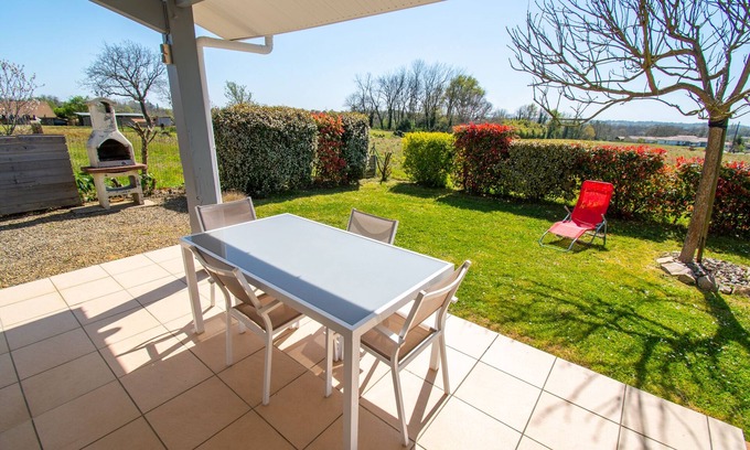Furnished house F3 on one level in Landes Chalosse in a gourmet region is located in Saint-Geours-d'Auribat. Furnished house F3 on one level in Landes Chalosse in a gourmet region provides accommodation, featuring TV, View, Barbecue/Outdoor Cooking, among other amenities. This House features TV, View, Barbecue/Outdoor Cooking, to make your stay a comfortable one.