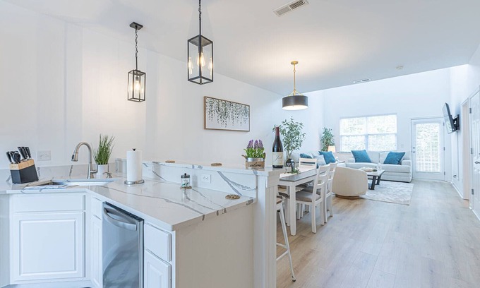 Leave all your worries behind with this spacious midterm oasis, just 20 minutes from downtown Charleston. Located at the entrance of Johns Island, this townhome is in a quiet and warming community. The home is equipped with plenty of natural lighting to enjoy the warmth of the Charleston sun! Whether it's taking a jog in our friendly neighborhood, lounging by the pool, or relaxing inside, our home will offer a cozy and modern vibe to any getaway or staycation.