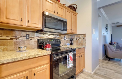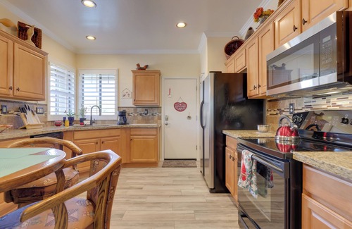 Spoil yourself with a sunny escape to this 2-bedroom, 2-bathroom vacation rental located in the private Anthem Country Club community. Embrace the ultimate southwest adventure as you rise in the morning to traverse scenic trails and explore parks like Daisy Mountain Peak and Lake Pleasant. Visit downtown Phoenix to tour art galleries and boutiques on Roosevelt Row, then return home to fix up dinner in the fully equipped kitchen and enjoy your home-cooked meal on the patio over an Arizona sunset!