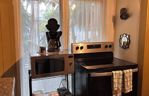 This beautiful coral rock cottage is located in one of the best neighborhoods in Miami. Architecture-location-comfort-cleanliness-security and private. Central air and heat new granite kitchen. New white porcelain tile bathroom. Live in the treetops. Charming dark expresso cork floors and view of pool & gardens.