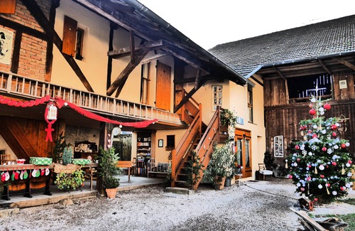 Patricia welcomes you to one of the three guest rooms nestled in the picturesque village of Magstatt-le-Bas, in the middle of the Sundgauvian countryside! They were designed in the beautiful farmhouse adjoining a beautiful half-timbered house. In the middle of the courtyard stands proudly an old road sign indicating Magstatt! Of course, everything else is in the same passionate fiber with three pretty rooms including a family room Kirsch. The other two also respond to fruit names: Mirabelle and Quetsche. The cuisine is at the height of the Alsatian decoration and tradition: kugelhopf, pies with plums and mirabelle plums, Christmas cakes during the markets, and various Alsatian and seasonal dishes, all carefully prepared with fresh products, terroir and farm.