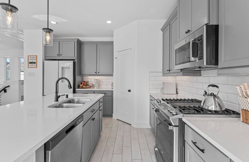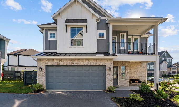 Step outside to a fenced backyard created for relaxing off shift: a covered patio, gas grill, and a fire pit area for calm Texas evenings. Guests also receive access to Bridgeland’s outstanding community amenities, including multiple pools, three fitness centers, scenic lakes, miles of trails, and neighborhood parks.