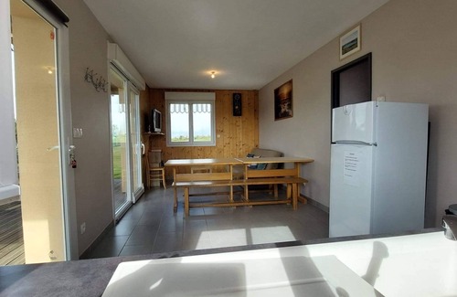 The house has 2 bedrooms with 140 beds and 2 bedrooms with 90 bunk beds, a bathroom, a living room with fitted kitchen (oven, washing machine, dishwasher, fridge, microwave ...) as well as a TV corner with sofa bed offering 2 additional beds.