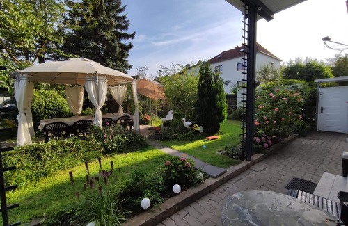 Absolutely central location directly in the center of Hofgeismar! All shops, stores, and sights are easily and quickly reachable on foot. When you stay in this centrally located accommodation, your family will have all important destinations in the immediate vicinity. The spacious ground floor apartment offers basic amenities for up to 7 people and has a separate entrance. A large south-facing terrace invites you to barbecue, smoke, or sunbathe. A free parking space is available in the courtyard, and additional free parking is right in front of the house. Sleeping arrangements: Bedroom 1 with double bed (180x200) for 2 adults, bedroom 2 with double bed (180x200) for 2 adults and single bed (90x200) for 1 adult, living room with single bed (90x200) for 1 adult as well as a couch for 1 adult and possibly 1 small child.