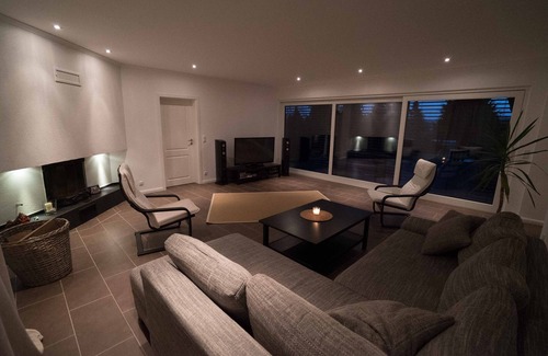 Exclusive 5-room apartment for 6+ persons, about 150sqm on one level. Stylish fireplace in the bright, spacious living room. Dining room and open kitchen. Nice cozy sofa area with flat screen HD TV and DVD player and Wi-Fi.