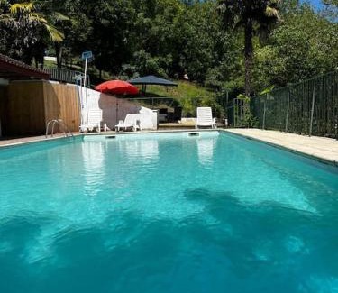 Gîte 6 personnes avec piscine is located in Agnac, just 20 miles from Bergerac Train Station and 12 miles from Barthe Golf Course. This property offers access to table tennis, free private parking, and free Wifi. Outdoor seating is also available at the vacation home. Providing a terrace and garden views, the vacation home includes 2 bedrooms, a living room, satellite flat-screen TV, an equipped kitchen, and 1 bathroom with a shower. Towels and bed linen are featured in the vacation home. There's also a seating area and a fireplace. Guests can swim in the pool with a view, go walking tours, relax in the garden, and use the barbecue facilities. Chateau des Vigiers Golf Course is 15 miles from Gîte 6 personnes avec piscine, while Marmande Golf Course is 16 miles away. Bergerac Dordogne Périgord Airport is 18 miles from the property.