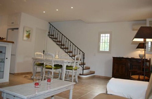 In a vineyard in activity, part of the House of the owner unopposed. Gite recently renovated, very comfortable with air conditioning. Common ground, private terrace with garden furniture. Private parking. Electric barbecue. Close to beaches and Gulf of Saint Tropez, many animations, hiking trails in the Massif des Maures. Ground floor: Large living-room (TV, DVD, hi-fi system) open kitchen, storeroom. First floor: a bedroom with a double bed (160cm), a bedroom with a double bed (160cm) adjustable in 2 single beds (80cm). 2 shower rooms. Independent WC. WIFI.