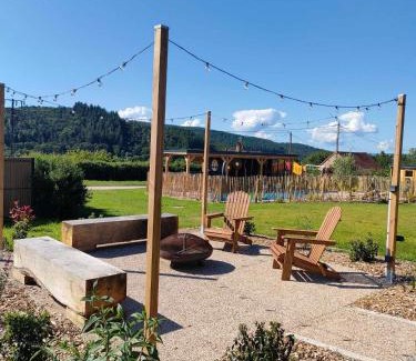 Featuring a garden, Gîte, aux portes du Morvan provides accommodations in Voudenay. The air-conditioned accommodation is 27 miles from Hospices Civils de Beaune. There's an outdoor fireplace and guests can use free Wifi and free private parking. Featuring pool and garden views, this recently renovated vacation home offers 2 bedrooms and opens to a balcony. Offering a terrace with mountain views, this vacation home also features a flat-screen TV, a well-equipped kitchen with an oven, a microwave, and a toaster, as well as 1 bathroom with a shower and a hair dryer. The property has an outdoor dining area. You can play table tennis at the vacation home. In addition to a seasonal outdoor pool, Gîte, aux portes du Morvan also features outdoor play equipment. Beaune Train Station is 28 miles from the accommodation, while Beaune Exhibition Center is 28 miles from the property. Dole-Jura Airport is 67 miles away.