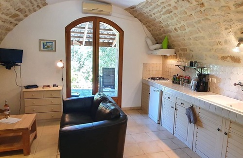 Balazuc is a warm gîte with lots of character. The vaulted ceiling and the thickness of the stone walls give an authentic charisma. For more freshness, it is equipped with air conditioning. The cottage has an area of approximately 40 m², a living room, a kitchen and a bedroom for 2 people, as well as a large bathroom with shower, toilet and sink. Bed linen and tea towels are provided. At the entrance to the cottage, you will find a covered terrace with stunning views in complete privacy. The second terrace, lower and uncovered, has two deckchairs and a picnic table.