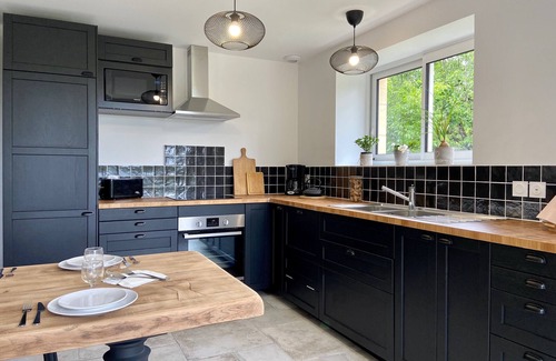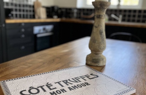 We favored a simple but refined decoration in the color of winter and summer truffles... white and black are present throughout the house!!! Our Gîte, calm and green, sets the tone as soon as you enter the large living/dining room opening onto a magnificent terrace, to meet with friends or family around a nice table during a barbecue or to bask in a deckchair. The kitchen open to the living room has been designed to make good meals: induction hob, oven, microwave, dishwasher,... The floor offers you 3 beautiful bedrooms including a master suite, a dormitory for 3 children, a bathroom and a WC. We have everything planned to accommodate the little ones: cot, high chair and bathtub,... A plus: a laundry room, adjoining the kitchen, has been created with a washing machine for convenience!