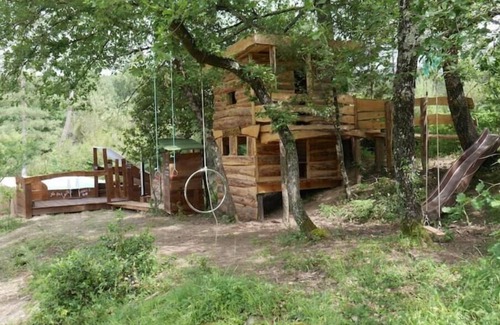 Gîte Cabane Saloon en Ardèche is located in Malbosc. Gîte Cabane Saloon en Ardèche provides accommodation, featuring TV, Sports/Activities, Kitchen, among other amenities. This Cabin features TV, Sports/Activities, Kitchen, to make your stay a comfortable one.