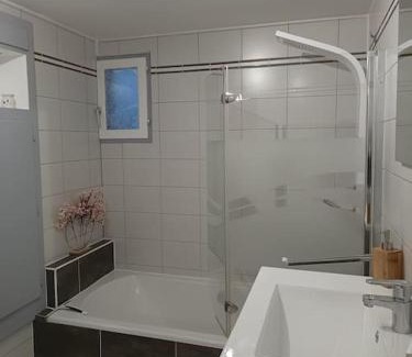 Featuring a garden, Gîte Chez l'Oncle Paul features accommodations in Urschenheim. This property offers a private pool, free Wifi, and free private parking. House of the Heads is 8.5 miles away and Saint Martin Collegiate Church is 8.8 miles from the vacation home. Offering a terrace with pool views, this vacation home also features a cable flat-screen TV, a well-equipped kitchen with a dishwasher, an oven, and a microwave, as well as 1 bathroom with a bath and a hair dryer. The property has an outdoor dining area. For guests with children, the vacation home offers outdoor play equipment and a baby safety gate. Colmar Expo is 7.7 miles from Gîte Chez l'Oncle Paul, while Colmar Train Station is 8.5 miles from the property. EuroAirport Mulhouse Airport is 40 miles away.