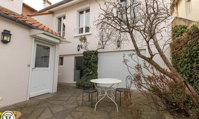 Its location will allow you to explore the shopping streets and the many cultural sites of Clermont-Ferrand one day and climb the famous volcanoes of the Chaîne des Puys, a UNESCO World Heritage Site, the next day. For rainy days, the cottage is a real museum: you can take the time to admire the many paintings or read one of the books from the library. The owner who lives part of the year in the house adjoining the gîte will be happy to help you discover his region while remaining discreet thanks to the independent entrance. The cottage consists on the ground floor: -an equipped kitchen with dining area -a laundry room Upstairs: -a lounge area with library area -a bedroom with a 140 cm bed -a shower room/WC Shared outdoor courtyard with garden furniture for moments of relaxation.