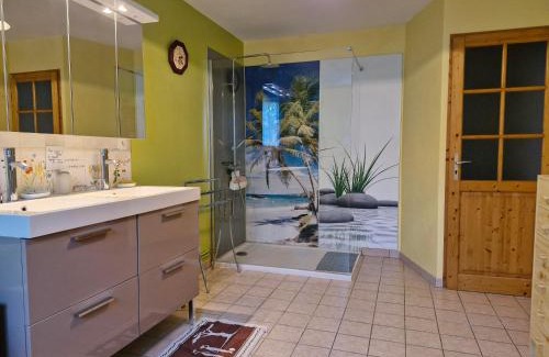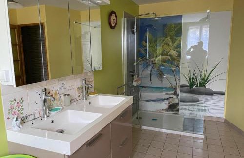 Offering a garden, Gîte d'Haute-Cour provides accommodations in Moraches. This vacation home offers free private parking and free Wifi. Guests can use a terrace. The vacation home consists of 3 separate bedrooms, 2 bathrooms, and a living room. A TV is featured. The accommodation is non-smoking. Vézelay Basilica is 21 miles from the vacation home. The nearest airport is Dole-Jura Airport, 126 miles from Gîte d'Haute-Cour.