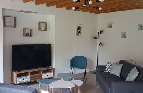 You will have at your disposal 3 bedrooms, 2 bathrooms, a playroom for children with a sofa bed and 4 beds, a walled garden with trampoline and swing.