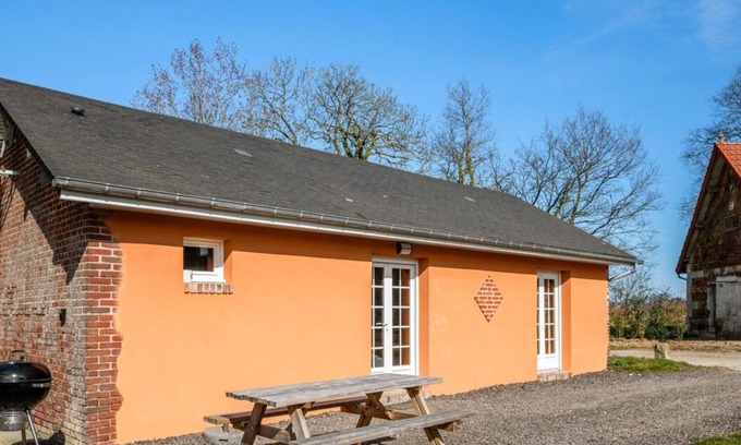 Single-story cottage: - Living room with open kitchen (dishwasher, microwave, mini-oven, kettle, toaster, filter coffee maker, and SENSEO coffee maker), - Bedroom with a double bed (140x190cm), - Bedroom with two single bunk beds (90x190cm), - Bathroom with shower stall, - Separate toilet. Outdoors: - Private parking space - Children's play area (trampoline, climbing frame, pedal tractor, seesaw) shared with the owners - Enclosed garden Animals on site: goats and a donkey. Baby equipment is available in the accommodation. Please note: no internet access in the cottage (perfect for recharging your batteries). Welcome to Gîte de Blévillot – Charm and authenticity in the heart of a former clos-masure Nestled in a typical Norman rural setting, Gîte de Blévillot welcomes you to a former clos-masure, a true testament to local heritage. This authentic setting will delight lovers of old stone and nature. From the gîte, you can enjoy a peaceful view of the old dovecote and the animals on the property. The entrance to the estate is marked by four 18th-century brick pillars, emblematic remains of the Caux building style. Nearby, discover the beaches of Veulettes-sur-Mer, the spectacular panoramas of Étretat, or explore Le Havre, a UNESCO World Heritage City of Art and History, less than an hour away. The region offers a beautiful balance between heritage, nature, and the seaside.