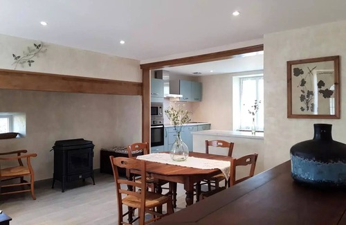 Accommodation: The house consists of a living room that includes living/dining room as well as a beautiful modern open kitchen, fully equipped. 2 bedrooms with double beds 140cmx190cm and a shower room and 1 separate toilet. Possibility of 2 extra beds on a bz. The cottage is designed for people with reduced mobility (accessible shower, width of room doors + WC adapted). Outside, green spaces at your disposal. An optional third bedroom (30 € per stay) with velux (store), without additional heating or sanitary facilities, with a double bed can be made available on request.The price includes: Bed linen, linen and household as well as wood for heating and electricity.The price does not include: Household package 50€ The cottage "Chas lo Fustier" is located in its preserved environment in the heart of a green countryside. The owners, who live next to the cottage, will welcome you warmly so that you feel at home. The cottage has a terrace, a private green space where you can enjoy the long summer evenings around the barbecue without any vis-à-vis. Ideal for you to relax and get green! Price Includes: Bed linen, linen and household linen as well as wood for heating and electricity. The Price Does not include: The optional cleaning package at 50€