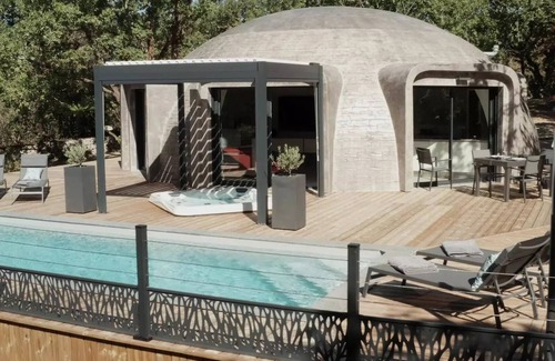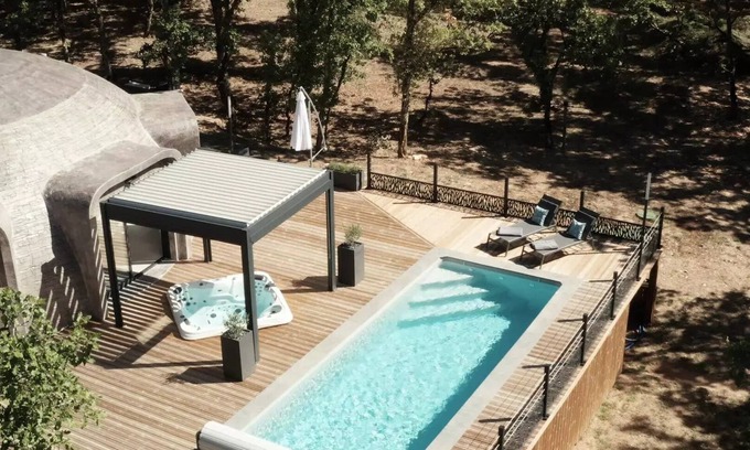 Accommodation: The Dome is located on a plot of 3000m2 in a quiet area, with a beautiful terrace of 100m2 facing south.The 45m2 living room with leather sofa, 190 cm TV, Harman Kardon speakers and the high-tech kitchen offer a striking contrast: that of space, luxury and design in nature.Both parental suites with Italian showers are very bright and their soothing decoration.One bedroom with a double bed 160x200 and the second two beds 80x200 The heated swimming pool (April to October) and the spa (all year round) allow an ideal relaxation.The price per additional participant is 60€/person on The overnight package, the 2 nights week package and the weekend package. From 3 nights there is no customer supplement beyond 2 people. An ultimate experience for an exceptional stay in nature?The Dome is an alchemy scholar of atypical and luxury with high-end services, in a particularly privileged universe.This unique habitat in France will allow you, for a night, a weekend or for a holiday, to relax and/or discover a region with a rich heritage dating back to the cradle of humanity, not to mention its great tourist sites unique in Europe.When you enter the dome, an impression of volume, design and zenitude is immediately required. The half-moon living room with its 4.20m ceiling and 3 large windows open on the terrace gives the feeling of still being in nature.Services are offered à la carte, from breakfast to dinner, hiking, massages, bike rental, etc.Please contact the owner for more information Price Includes: HeatingToilet linenlinenBed linenElectricityHousehold at end of stay The Price Does not include: The overnight package, the 2 nights week package and the weekend package include overnight and breakfast for two people. The price per additional participant is €60/person on these packages. From 3 nights there is no customer supplement beyond 2 people.