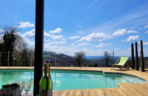 Accommodation: To relax with family or friends, you will enjoy the private and secure swimming pool (alarm + barrier) and the volleyball pitch, badminton, basketballs in a covered building of 200 m2. Close to the tourist sites: a gulf of Padirac and the circus of Autoire (just in front of our cottage), Collonges la Rouge and Turenne, Martel (and its small tourist train overlooking the Dordogne), Rocamadour...This holiday home is also ideally located for hiking, canoeing down the Dordogne, fly fishing or local markets that will allow you to exchange with the producers of the region. DRC: A living room with kitchen/dining room/living room with wood stove, 3 ch (2 beds 90x190, 1 bed 140x190, 1 bed 160x200). A bathroom and a toilet.Indoor swimming pool 9 m50 x 4m50, teacher 1m20 to 1m70. open from May to October convertible sofa. Fibre installed in the gite.The price does not include: Toilet linen/Menage Package 90€ From this closed plot of 2000m2, at 500 meters altitude, located in a small village suspended on the hills of the Dordogne with a breathtaking view of the Lot valley and its causses, you can relax in absolute calm and without vis-à-vis. Located on the south side of this hamlet, our restored and sun-oriented sheepfold will allow you to fully enjoy the happiness of the departments of the South West. This renovation, accompanied by interior and exterior architects, makes this charming cottage a single-storey home with great comfort. The use of noble and ecological materials makes it a low-consumption home. Price Includes: LinenBed linenElectricityHeating The Price Does not include: Toilet linen - no option possibleEnd of stay household package 90€