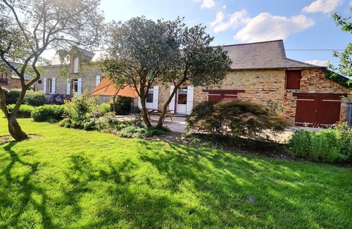 Single-storey gîte with 5 access steps to the entrance: a dining room with a living room and a sofa bed for two 140X190 beds (decorative fireplace), a kitchen, a bedroom with a 160X200 bed and a sofa bed for two 140X190 beds, a bedroom with a 140X190 bed (space with interior glass door but without window), a bathroom with double sinks and a separate toilet. Parking in the property and garage. 7 km from the Nantes-Rennes axis, the Gîte de la Madeleine welcomes you in a rural environment that invites you to relax. Independent on a large enclosed garden with flowers and trees, you will enjoy a large south-facing terrace. This beautiful stone building offers pleasant living spaces where furniture of character and modern comforts combine in a refined atmosphere. Between Bain de Bretagne and Grand-Fougeray, you are in an area conducive to outdoor activities: the municipal pond of the Madeleine with possible fishing (purchase of card on site) is only 500m away, two leisure bases equipped on the Vilaine (Pléchâtel and Sainte-Anne sur Vilaine) are each 20 minutes away and the departmental gliding center is 4 km away.