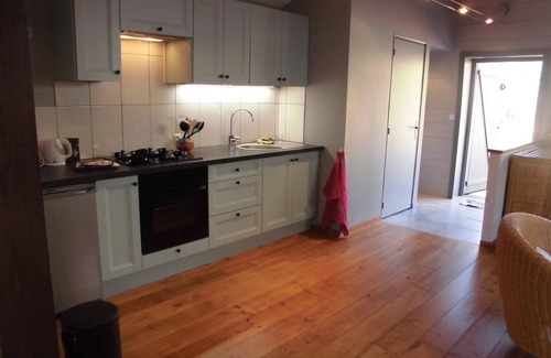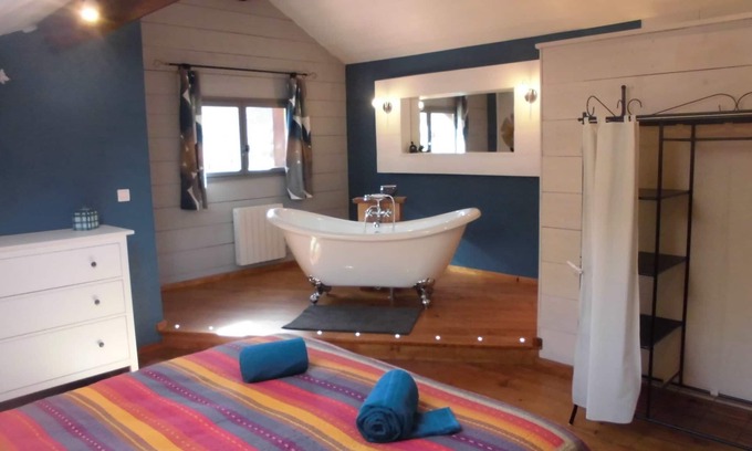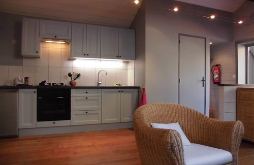 Located on the first floor of a private workshop with independent access, the gîte offers an area of 60 m² with every comfort, pleasant terrace and private parking.