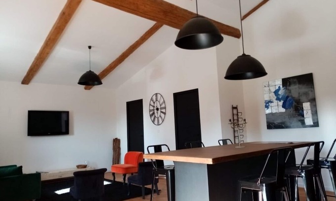 In an old winery, transformed into a charming 80 m2 gîte, in Villesèque des Corbières, a charming village in the heart of a landscape of vineyards and scrubland in the Cathar region. It is composed of a large living room with sofa bed, an equipped kitchen and central island, a master bedroom with 180 cm bed and walk-in shower, a bedroom with 140 cm bed, a separate toilet. The cottage is equipped for 6 people, bed linen and towels provided. Compulsory cleaning at the end of the stay.