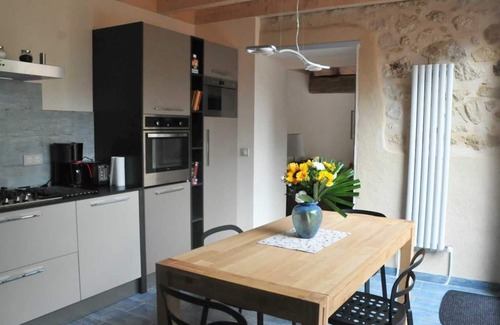 Ideally located in the Graves vineyards, a stone's throw from the Sauternes region and the Pessac-Léognan vineyards, 25 km from the splendid city of Bordeaux and not far from the ocean beaches and great lakes, this accommodation will charm you for a stay of a few days or weeks. Housed in the winery of an unusual 17th-century estate, completely renovated with respect for the period but in a contemporary style, it has been carefully designed with comfort in mind. On the ground floor, it comprises a large 30m² living room with a DVD/Blu-ray player and full-HD TV, a fully equipped 15m² kitchen with granite countertops and a large French window opening onto the terrace. Upstairs, there is a large 18m² bedroom (queen-size bed), a 12m² bedroom (two single beds), and a magnificent bathroom. This cottage features a private garden of approximately 300m² and an exotic wood terrace. The bright rooms all overlook the enclosed, private, and very quiet garden. Dogs are welcome under certain conditions, but cats are not permitted. Bed linens are provided, and towels and end-of-stay cleaning are available. A cleaning deposit will be required (€85 for one-week stays and €150 for stays of two weeks or more). Gas central heating and tourist tax are not included. The cottage adjoins the owners' home and is very quiet. Access to the cottage is via the property's grounds. Parking is available in the grounds.