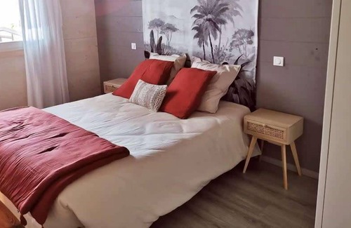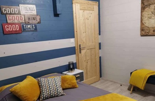 Upstairs, the mezzanine has a convertible sofa (140x 190), 3 bedrooms 2 140x 190 and 1x 160x 200), shower room, WC. Baby-Foot.
