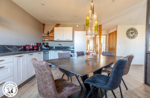 When you arrive at the cottage in summer, Jean-Luc is back from the harvest, in winter, he has just taken care of his animals. It is an ideal place to enjoy the beauties of the Puy-de-Dôme but also to share a moment with the owner who will be happy to share his passion for his job and show you around his farm nearby. The cottage is located on the second floor of the owner's large house. On the ground floor, there is a second cottage for two people. You will be delighted by the large unfenced private land with barbecue and ping-pong table. For moments of relaxation, it will be in the large spa (accessible on request depending on the season) which is nestled in one of the corners of the house in a tastefully decorated shelter (accessible for the moment by the owner's house) and shared with the second cottage. Possibility to book the services of a sports coach and foot reflexology massage on request from the owner. Many visits nearby: Saint Nectaire, Murol, Besse and Saint Anastaise, Issoire, Saint Saturnin, Montpeyroux, Grottes de Jonas, Gergovie, the Puys Sancy and Puy de Dôme, the lakes: Chambon, Aydat, Pavin... The cottage is on the same level and is composed as follows: - a large living room with kitchen, dining room and large living room - a bedroom with 1 bed 140 - a bedroom with 2 beds 90 (the top bed is prohibited for children under 6 years old) - a master suite with 1 bed 160 and a private bathroom - a bathroom with double sink - a toilet Heating and air conditioning. Possibility of two beds 90 in addition (put in bedroom 2 in bunk beds with the 2 beds 90 already present).