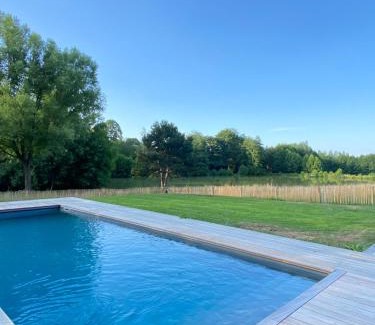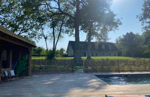 Featuring a garden, Gîte des Etangs offers accommodations in Glanville. This property offers access to table tennis, free private parking, and free Wifi. The pool features a fence and pool views. Offering a terrace with lake views, this vacation home also features a flat-screen TV, a well-equipped kitchen with a dishwasher, an oven, and a microwave, as well as 5 bathrooms with a bidet and a hair dryer. There's also a seating area and a fireplace. Guests at the vacation home can enjoy darts on-site, or go hiking or walking tours in the surrounding area. Deauville Racecourse is 5.9 miles from Gîte des Etangs, while Deauville Casino is 6.7 miles from the property. Deauville - Normandie Airport is 8.1 miles away.
