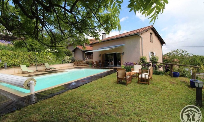 Gîte des Vallons - Vaugneray is located in Vaugneray. Gîte des Vallons - Vaugneray provides accommodation, featuring Pool, TV, Security/Safety, among other amenities. This House features Pool, TV, Security/Safety, to make your stay a comfortable one.