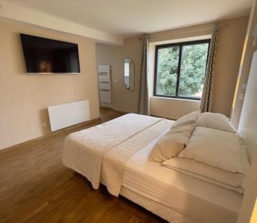 Gîte du Château de Treffort is a recently renovated guest house in Treffort where guests can make the most of the garden and bar. This guest house features free private parking, private check-in and check-out, and free Wifi. Royal Monastery of Brou is 11 miles from the guest house and Bourg-En-Bresse train station is 12 miles away. Featuring a terrace and mountain views, the guest house includes 5 bedrooms, a living room, satellite flat-screen TV, an equipped kitchen, and 3 bathrooms with a walk-in shower. Guests can enjoy a meal on an outdoor dining area while overlooking the garden views. A dressing room and laundry service is also available. There is a coffee shop, and a mini-market is also available. For guests with children, the guest house offers an indoor play area, outdoor play equipment, and a baby safety gate. If you'd like to discover the area, hiking, walking tours, and bike tours are possible in the surroundings. Ainterexpo is 11 miles from Gîte du Château de Treffort, while Bourg-en-Bresse Golf Course is 10 miles from the property. Lyon - Saint Exupery Airport is 53 miles away.