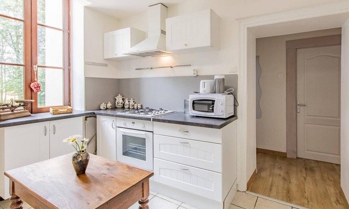Coach in the field of "human ecology" (working on site), Delphine opens the doors to you of an authentic castle steeped in history from the end of the 18th century, partly restored & revisited as a gentle holiday resort, nestled in a natural & wooded park of 8000m² (housing a small wood and a therapeutic garden with aromatic & medicinal plants / visit & entertainment possible on request) within a private property of 1.5 ha nestled in the heart of the Chalonnaise countryside on the edge of fields & meadows. Peaceful residential rural hamlet nestled between "full nature" & "agriculture" in the hollow of a vast plain dotted with bucolic ponds & rivers, close to a vast forest area (literally "green lung") and 1.5 km from the banks of the Saône (paradise for fishermen & other kayakers). Spacious comfortable cottage. Warm country character with contemporary accents, mixed with the exotic "soul" of an old "bourgeois" residence of which the elegant marble fireplace mantels remain. Cozy atmosphere mixing tradition & modernity. Pleasant reserved & shaded area, nestled under the trees on the park side (full garden furniture). Natural pétanque court on the courtyard side. Composition: Gîte in a house with common entrance including year-round rental and owners' accommodation (property also hosting the owner's business premises / meeting and training rooms located in neighboring buildings / room rental possible). Gas central heating. Wi-Fi (fiber). Gîte on the 1st floor: kitchen, living room (2 single beds 80x200cm that can be converted into a double bed 160x200cm as an extra), 2 bedrooms (double bed 160x200cm / double bed 160x200cm + 2 single beds 80x200cm that can be converted into a double bed 160x200cm), bathroom water (shower), separate toilet. Sleepings are prepared in advance according to the composition of the group. Private "reserved" garden area on the common park (8000m²). Ping pong table. Private parking. Supermarket & shops 5 km. All amenities 11 km.